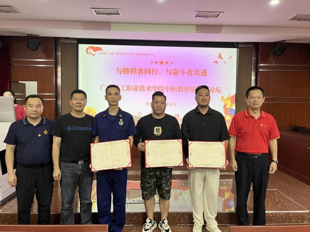2023年6月8日下午中职部在琶洲校区举行了“与榜样者同行,与奋斗者共进”为主题的校友论坛活动,中职教育部郑耀涛主任,杨育斌副主任,学生科陈树华科长,各学生会、社团、团委直属部门组织的学生干部共150多人一起参加了本次校友论坛。本次校友论坛邀请到了07级计算机网络专业校友郑涟誉,07级汽车维修专业校友朱恒,09级模具专业校友王嘉,他们分别以“逐梦”“坚持”“珍惜”等主题与学弟学妹们一起分享了他们的成长经历。