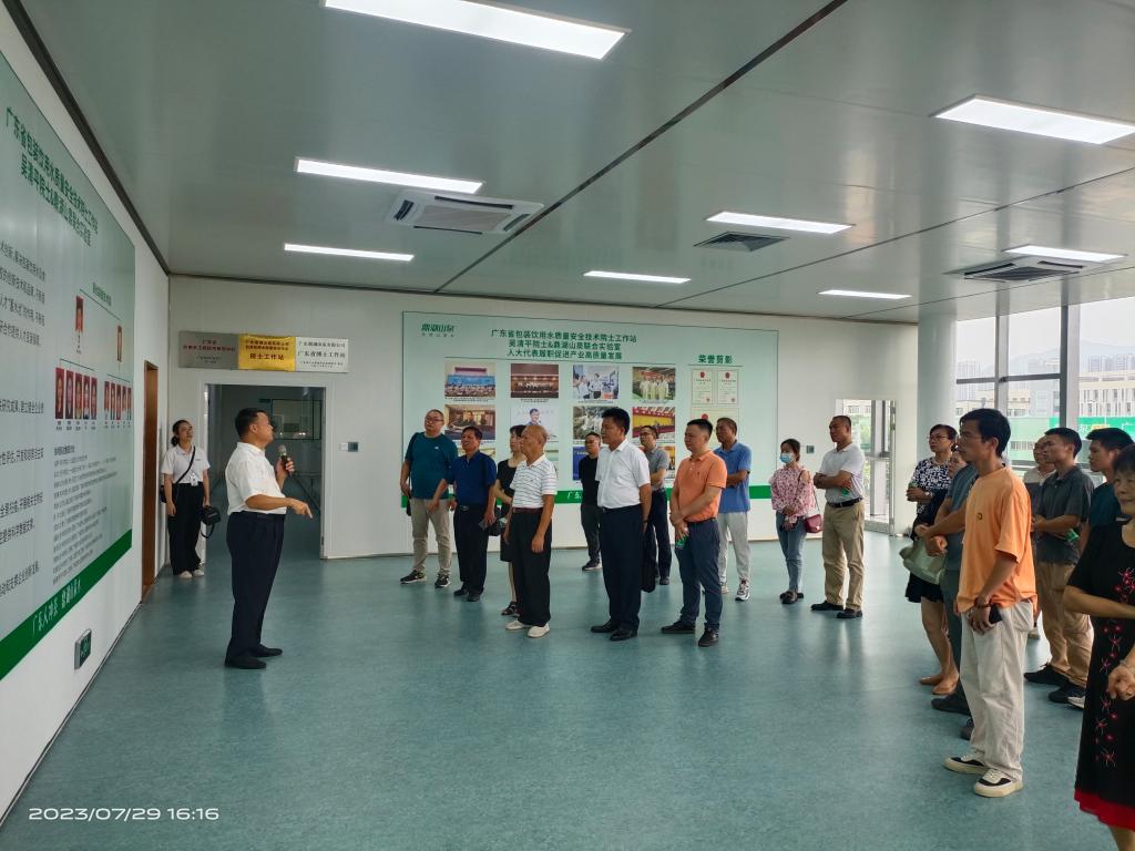 吴会长首先带领大家参观鼎湖山泉党群服务中心、品牌馆、生产车间生产线、院士工作站。