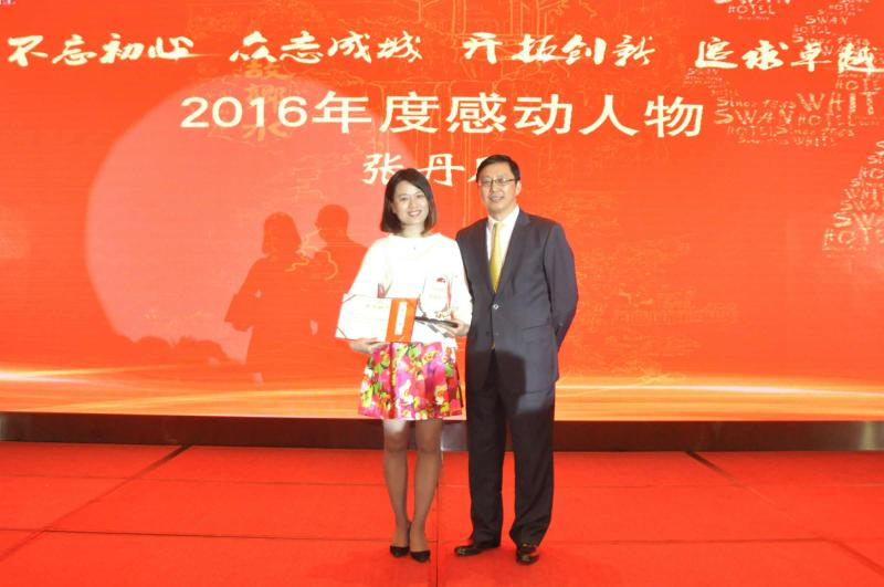 图8-26 白天鹅宾馆首席运营官张添向张丹凤颁2016年感动人物奖