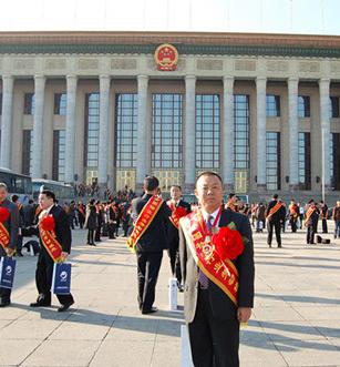 彭舜章校友出席出席全国物流行业先进集体、劳动模范和先进工作者表彰大会,在人民大会堂前留影