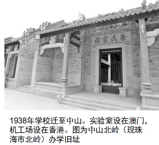 1940年8月,我校继续经香港迁移到韶关乐昌上丛村坚持办学并创建“广东科学仪器制造厂”。